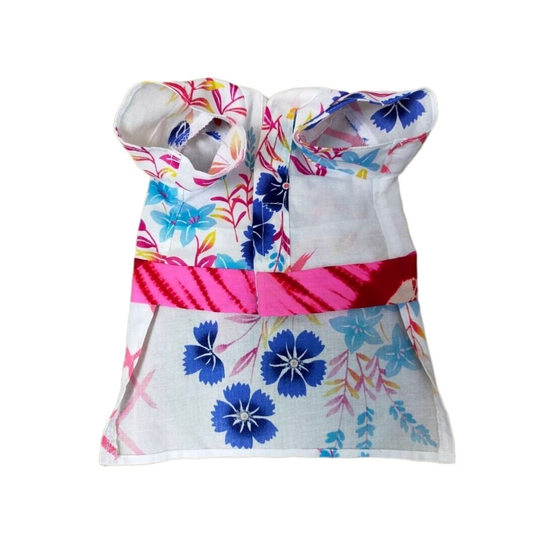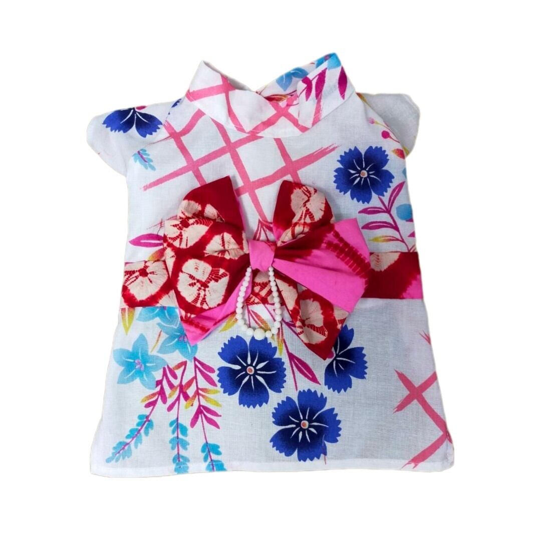 着物をリメイクした夏は涼しく、冬は暖かい滑らかな付け心地の小型犬用の『着物リメイク服』です。
