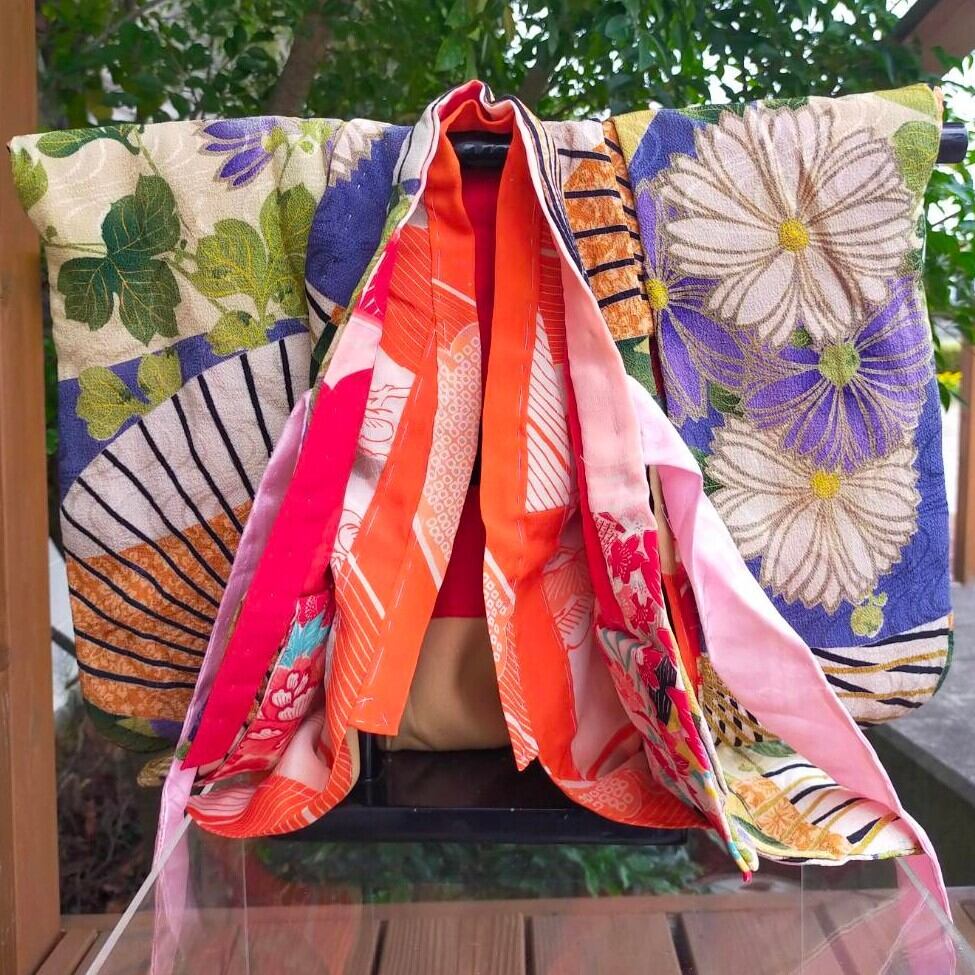 希少価値の高いアンティークの古布(シルク100%)を使用した、豪華な一点物のミニ着物です。