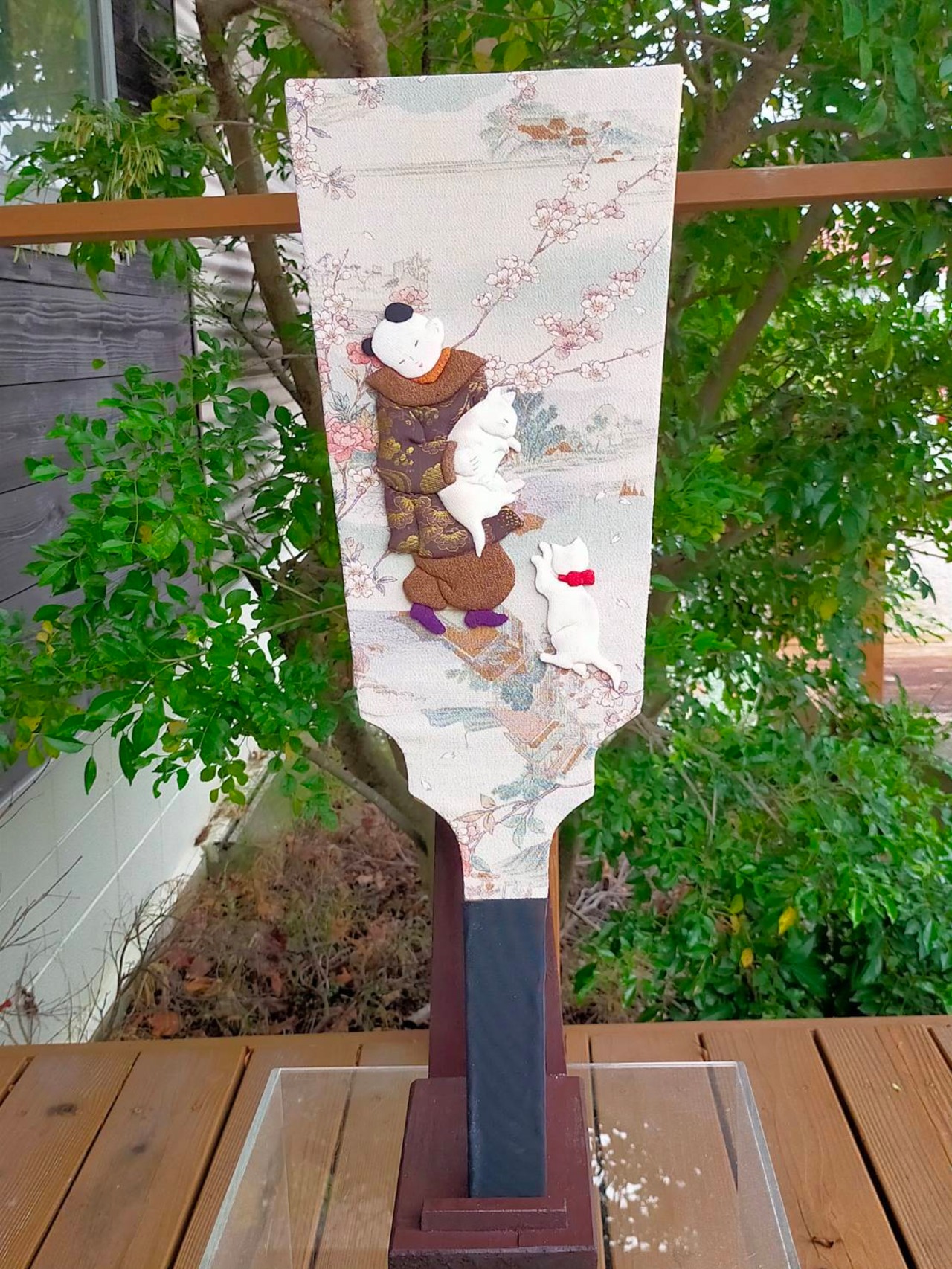 希少な古布(シルク100%)を使用した、優美な押し絵羽子板です。