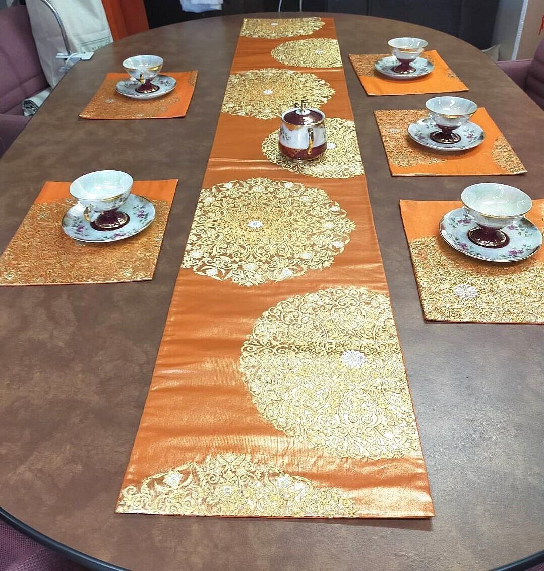 袋帯からリメイクした一点ものの『テーブルセンターセット』です。